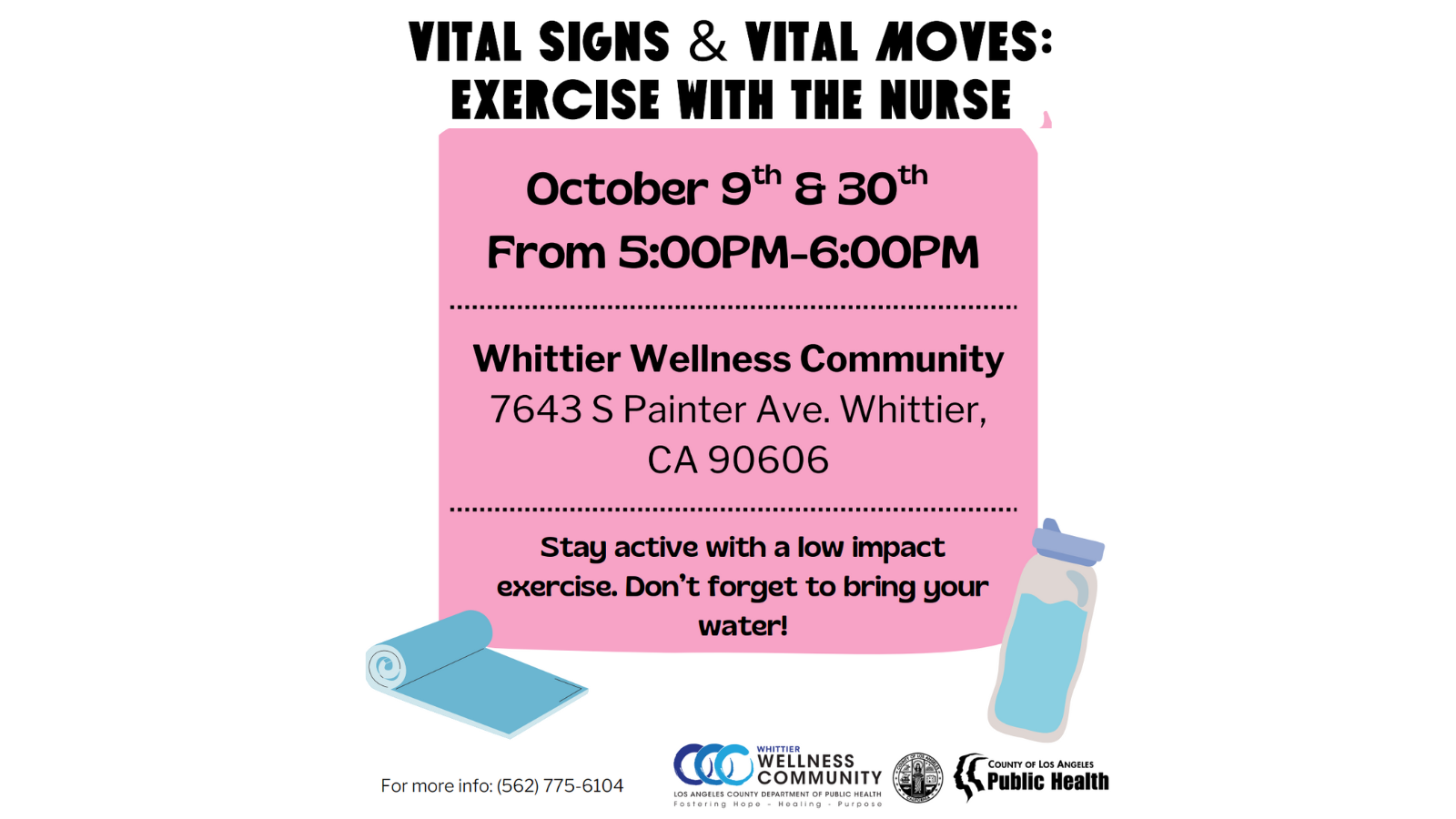 Stay active and support your health by joining the Exercise with a Nurse class at the Whittier Wellness Community Center!