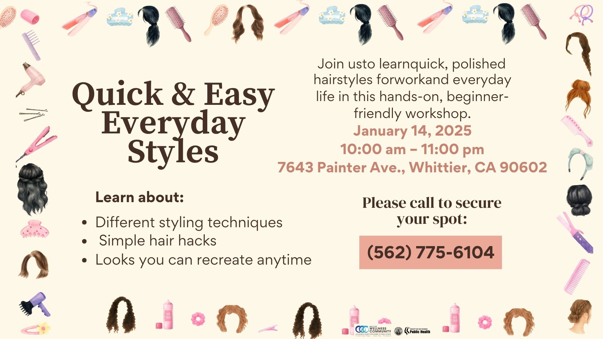 Quick & Easy Everyday Styles is a community workshop designed to teach simple, practical hairstyling techniques for everyday life. Participants will learn beginner-friendly methods, easy hair hacks, and polished styles that can be recreated independently for work, programs, or daily activities. This hands-on session focuses on building confidence, personal care skills, and routine self-presentation in… |