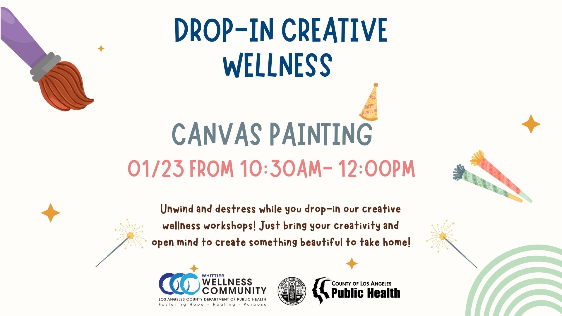 Offered in English and Spanish, Creative Wellness Fridays provide a relaxing weekly space to unwind, express yourself, and connect with others through hands-on creative activities. This workshop will feature Canvas Painting! Registration is required. Each session features a new art-based experience designed to support mindfulness, creativity, and overall well-being. To register, please call (562) 775-6104.…